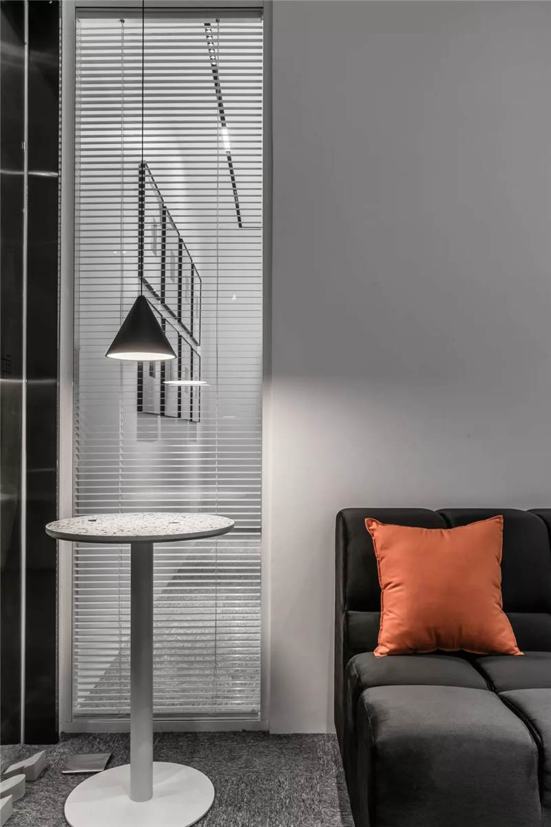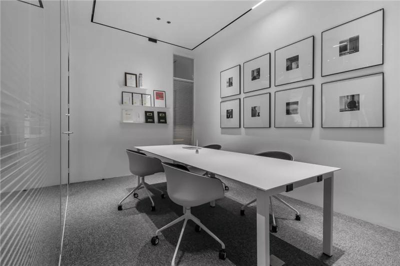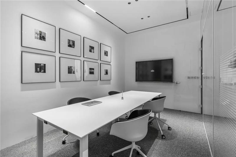 為了同時保證隱私和透明,張馳有道。會議室采用了玻璃+百葉窗的設計,這樣的交流區(qū)域保持彼此的通透與聯(lián)接,提升了場所的張力。使用貼合設計的局部掛畫藝術(shù),配以金屬的深邃感官,多媒體影視裝置加強了墻面空間的信息輻射作用。
