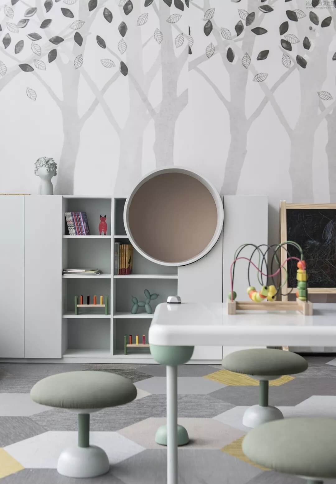 兒童區(qū)曼妙著森林深處的味道,暖暖的顏色彩散發(fā)著與自然 ,生命,和平共處的氣息,玻璃的陽光開放式結(jié)構(gòu),智慧的精靈無處不在,響應著空間的靈動氣息。