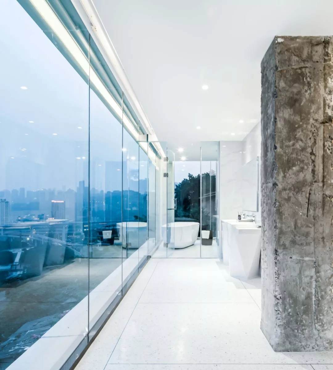 薄殼結(jié)構(gòu)與金屬幕墻構(gòu)成的“裙擺”創(chuàng)造出一層集合酒店接待、休憩與多功能廳的開放服務(wù)空間,漂浮為頂,下落為幕,抬升為廳,下沉為梯,旅客可以在裙擺之上游走,形成一條多變的觀景路徑,還原了山城的空間體驗(yàn)。