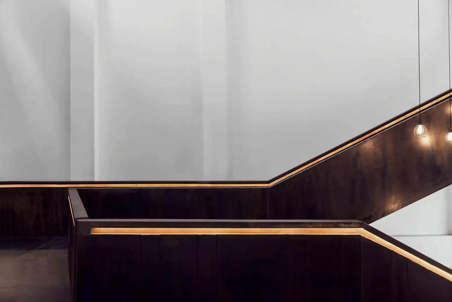 樓梯的鐵質(zhì)的暗褐色材料將隨著時(shí)間將慢慢腐蝕,人們可以看得見它的肌理生長(zhǎng)。
