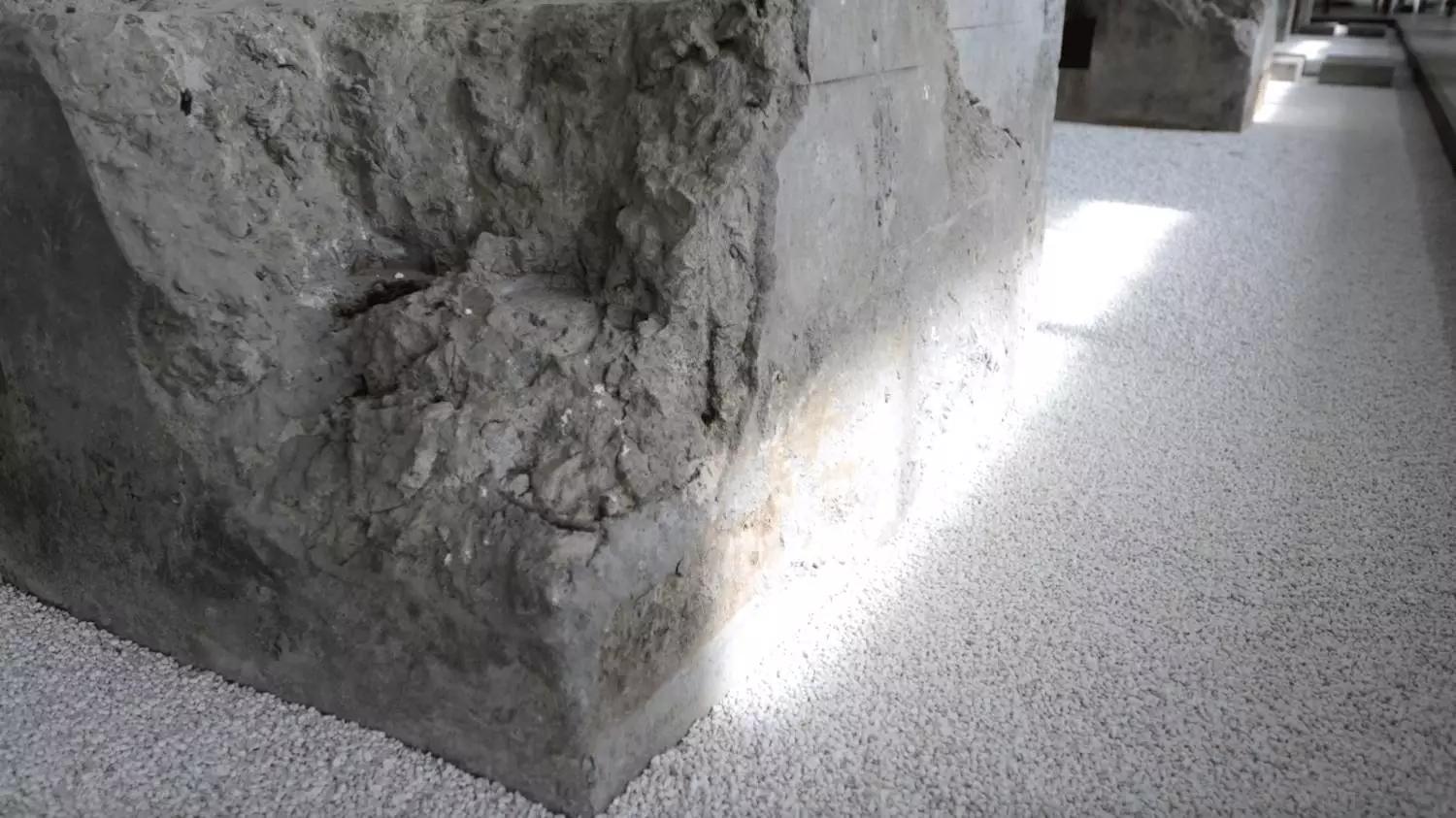 天窗的陽(yáng)光投射在舊石墩上,光隨時(shí)間緩慢流淌,從晨曦到夕陽(yáng)日復(fù)一日的撫摸石墩的肌理。人們彷彿可以感知到這片土地的過(guò)往,一天一年一個(gè)世紀(jì),或者更遠(yuǎn)。