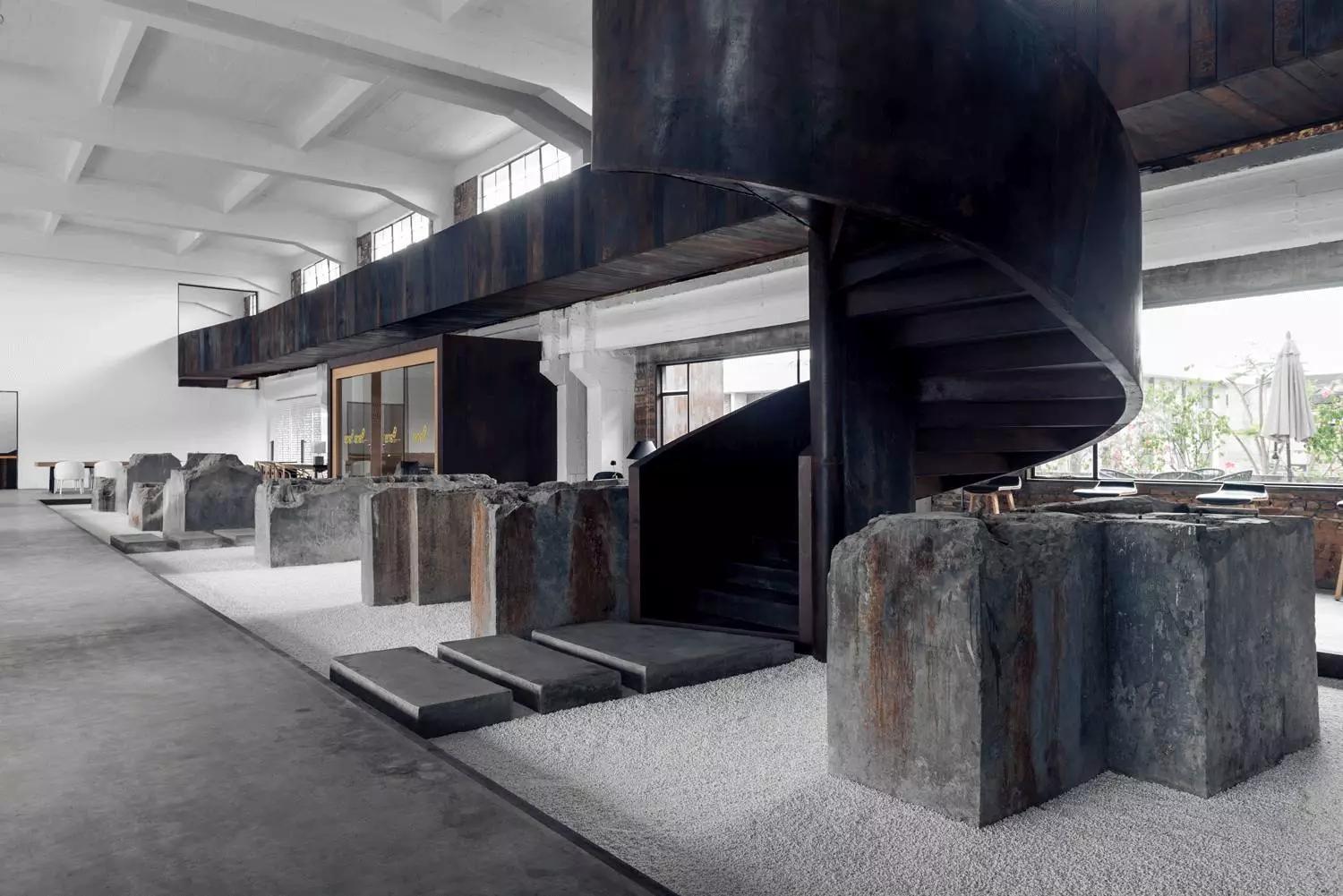 鐵質(zhì)樓梯像是舊體廠房生長(zhǎng)出的枝椏,營(yíng)造出強(qiáng)烈但不顯突兀的現(xiàn)代感。