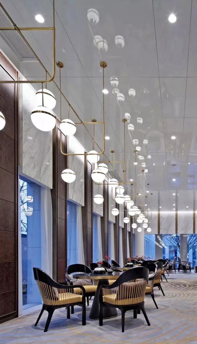 大型吊燈宛如運(yùn)河之水泛起的漣漪,靈動(dòng)唯美,抓人眼球。地面低調(diào)華麗的灰色大理石與之遙相呼應(yīng),古代先哲素有“天圓地方”之說(shuō),意境深遠(yuǎn)的寫(xiě)意格調(diào)翩然入室,整個(gè)空間滲透著典雅尊貴的氣派。