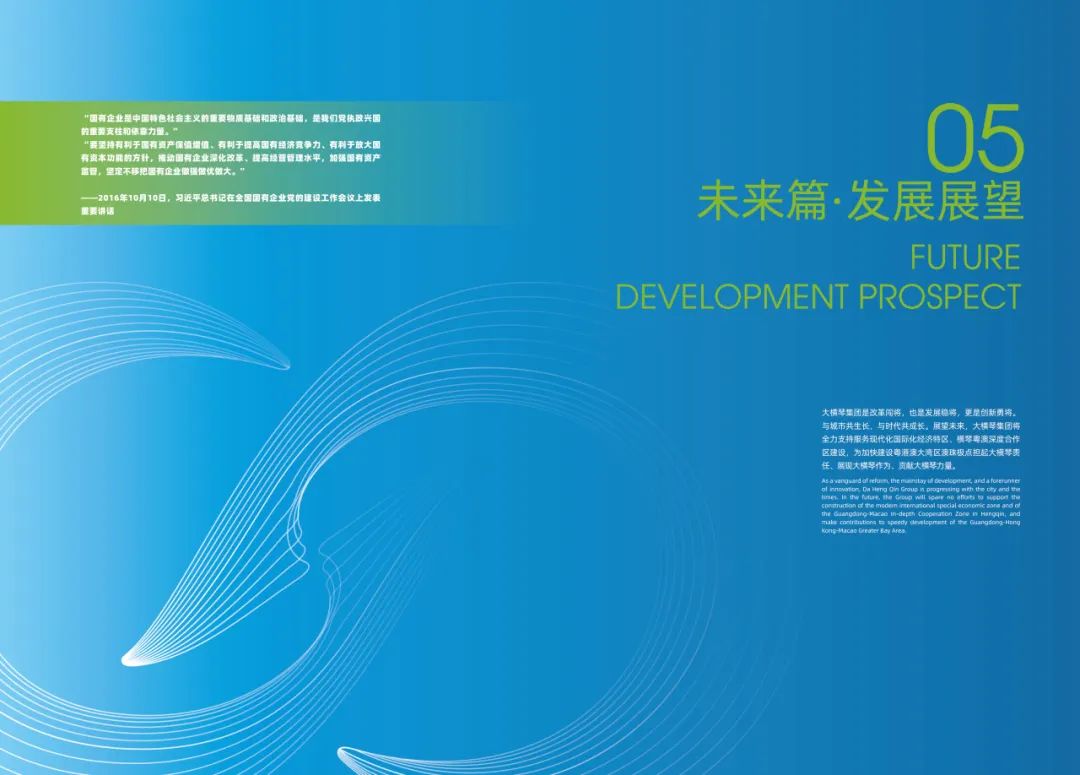 大橫琴集團(tuán)是改革闖將,也是發(fā)展穩(wěn)將,更是創(chuàng)新勇將。展望未來,大橫琴集團(tuán)繼續(xù)堅(jiān)定以黨的二十大精神,作為統(tǒng)領(lǐng)集團(tuán)全部工作的總綱,全力開創(chuàng)集團(tuán)高質(zhì)量發(fā)展新格局,為高質(zhì)量建設(shè)新時(shí)代中國(guó)特色社會(huì)主義,現(xiàn)代化國(guó)際化經(jīng)濟(jì)特區(qū)和橫琴粵澳深度合作區(qū)貢獻(xiàn)新力量、展現(xiàn)新作為。