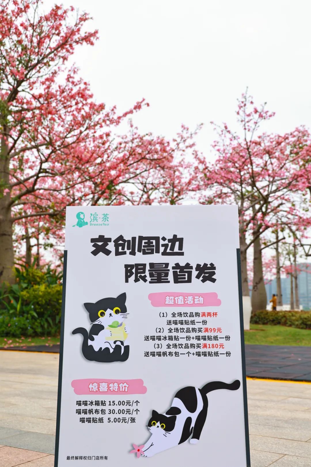 驛站自主品牌“濱·茶”更是與澳門(mén)高校學(xué)生設(shè)計(jì)工作室合作,聯(lián)手打造“貓店長(zhǎng)”花期限定主題文創(chuàng),用萌寵為花海注入更多靈氣,讓游客在被大自然治愈之余,也享受到小動(dòng)物帶來(lái)的舒心。