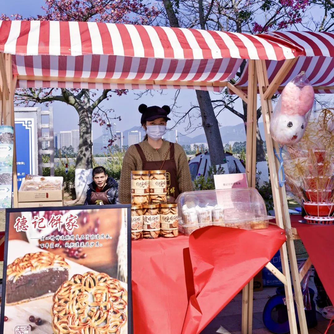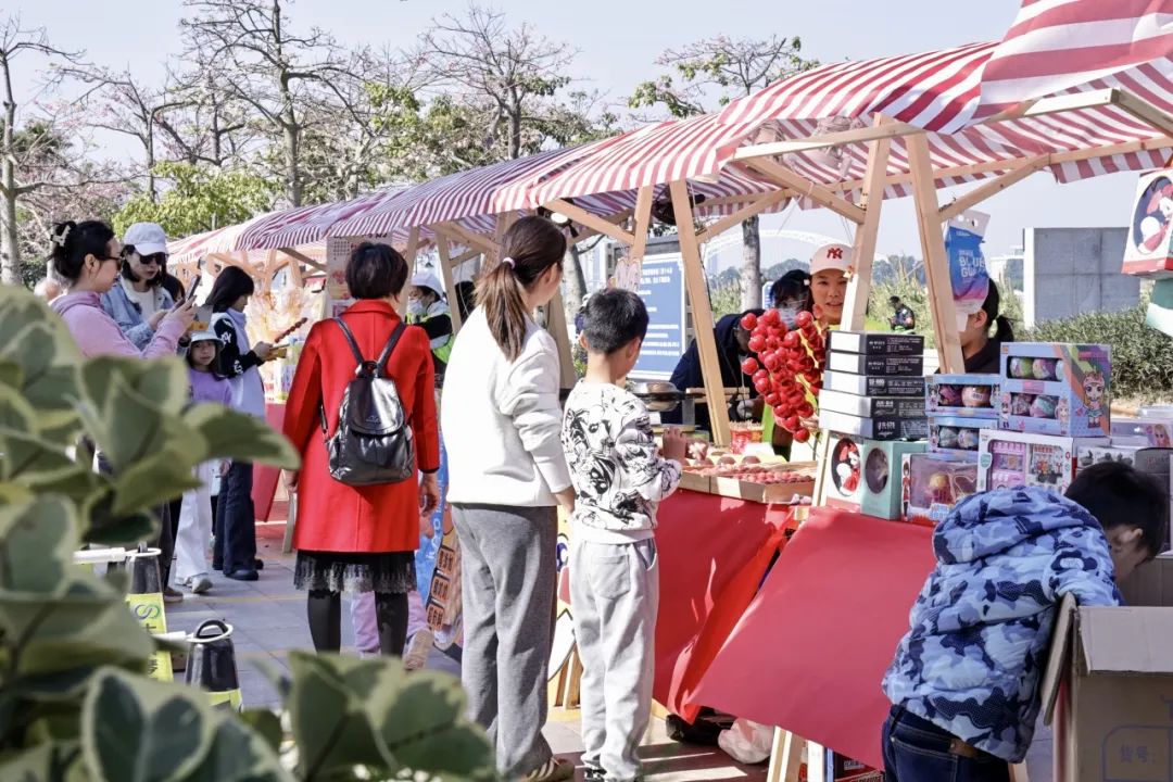 除此之外,每逢周末,一號(hào)、二號(hào)和三號(hào)驛站開(kāi)展東灣墟市活動(dòng),斗門(mén)蓮洲鎮(zhèn)東灣村農(nóng)產(chǎn)品市集走進(jìn)花海,帶來(lái)優(yōu)質(zhì)的本地產(chǎn)綠色農(nóng)產(chǎn)品、特色手工糖水和農(nóng)副產(chǎn)品、非遺點(diǎn)心小吃等,吸引了大批市民游客上前詢問(wèn)和購(gòu)買。游客在享受美景、體驗(yàn)美食之旅的同時(shí),亦促進(jìn)了鄉(xiāng)村振興與滿足城鎮(zhèn)消費(fèi)需求的良性循環(huán),鄉(xiāng)村市集在花海煥發(fā)出了新活力。